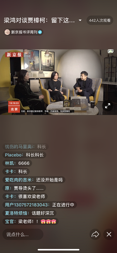 直播開始,梁鴻回憶當時參與新片拍攝是在汾陽的一個裁縫店里,采訪持續了三個多小時?!百Z導準備得很充分,他拿了厚厚一疊提綱,問了我很多事情。這些都是自己很久沒想過的童年、少年生活,以及家庭的故事,所以我一下子特別投入。這種感覺就好像一個人在帶領你重新回望過去那一段村莊的生活。采訪中,我感覺又重新回到梁莊的那條大河,而且更加強調了‘梁莊人’的身份,雖然我離開了這個地方,但突然間覺得自己跟這片大地連在一起?!?/p>