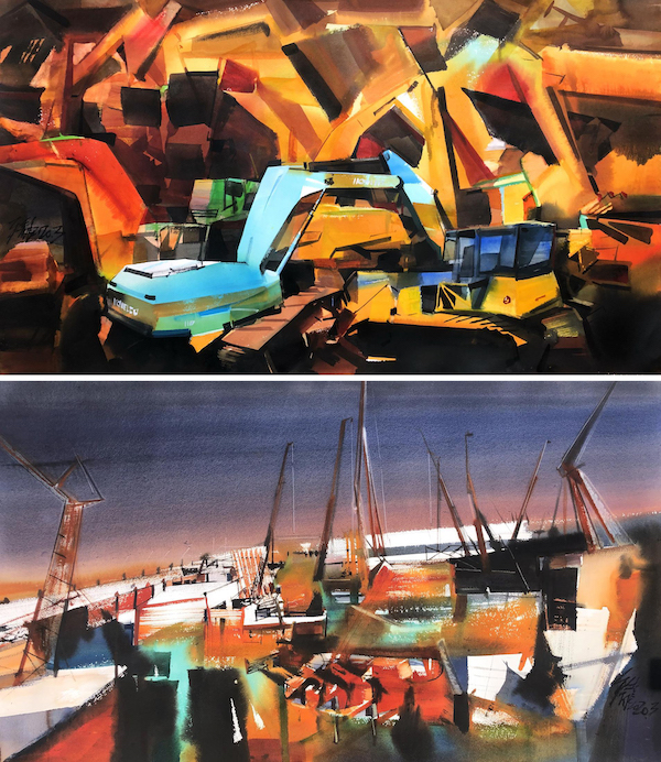 當時我選取了挖掘機,以俯瞰的視角看,就像玩具一樣,卻日夜不停地建設,他就像一位普通的勞動者、普通的民眾,承擔著一點點個人的力量。