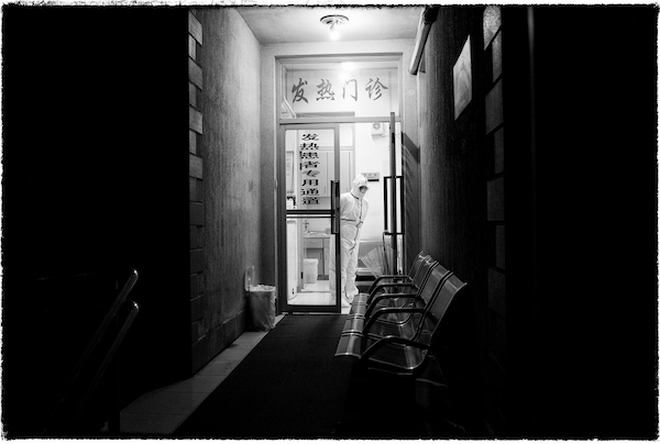 雍和(上海市攝影家協會主席) :我在大年三十的晚上拍下這張照片,時間節點是上海一級響應的時間。這張照片不是我刻意拍的,那天正好去醫院探望朋友,就在發熱病房外拍了一張照片。我拍照沒有條條框框,只是看到一個點就拍了。就這樣拍,從那天拍到今天為止,106天我沒有間斷。我的創作目的很簡單,只要能為歷史、為上海這座城市留下一點記錄就行了。