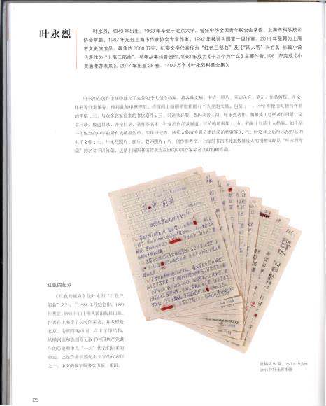 在半個多世紀的創作生涯中,葉永烈建立了完善的個人創作檔案,各種文稿、書信、照片、采訪錄音、筆記,作品剪報、評論、樣書等均分類保存。葉永烈長期從事中國當代重大政治題材紀實文學的創作,積累了大量的檔案和口述歷史資料,形成了相當規模的“葉永烈創作檔案”,成為中國當代歷史研究的一批原始文獻。