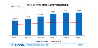 2015.12-2020.3網絡文學用戶規模及使用率