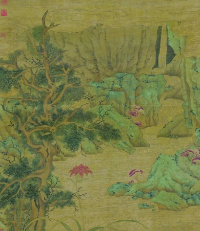 《五瑞圖》是標準的文徵明風格,是一種青綠山水?!拔迦稹敝傅木烤故鞘裁??中國歷史上存在著多種說法。在文徵明的這幅畫里,專家傾向于認為“五瑞”指的是古柏、萱草、靈芝、祥云、奇石??偠灾?,“五瑞”其實都代表著中國人對國泰民安、幸福祥瑞的祈求和希望。這在經歷了疫情的當下,顯得意味深長。