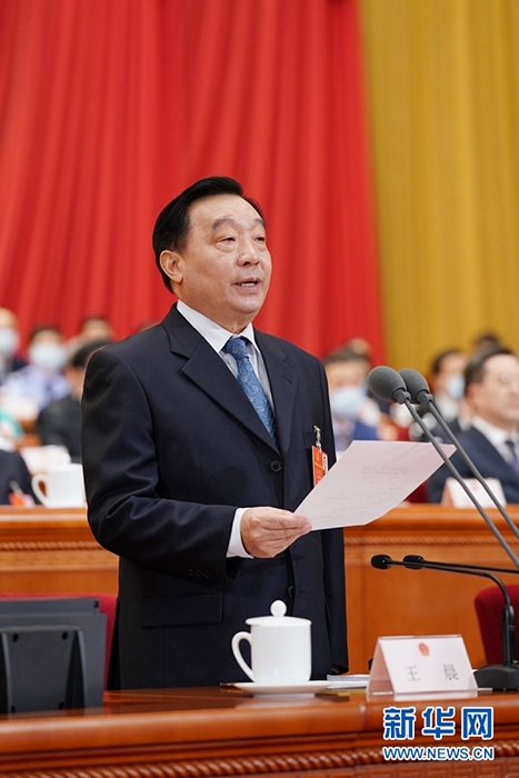 5月25日,十三屆全國人大三次會議在北京人民大會堂舉行第二次全體會議。王晨主持會議。 新華社記者 殷博古 攝