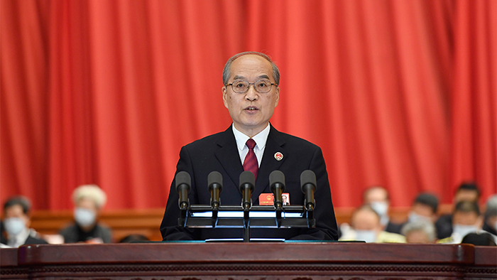 5月25日,十三屆全國人大三次會議在北京人民大會堂舉行第二次全體會議。最高人民法院院長周強作最高人民法院工作報告。 新華社記者 岳月偉 攝