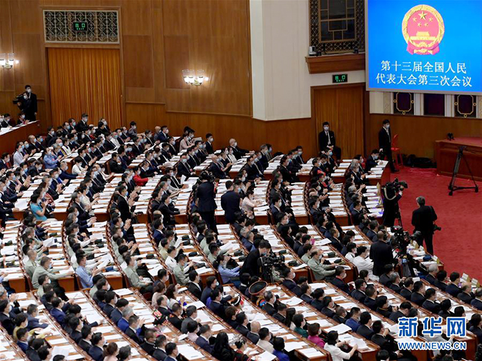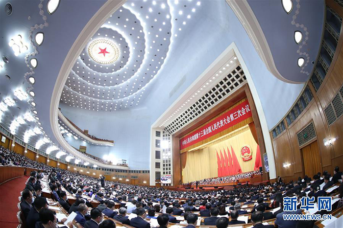 5月25日,十三屆全國人大三次會議在北京人民大會堂舉行第二次全體會議。 新華社記者 李賀 攝