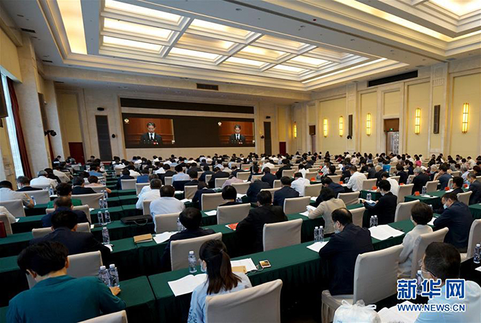 5月25日,全國政協十三屆三次會議舉行視頻會議。會議在全國政協機關設主會場,在委員駐地設分會場。這是主會場。 新華社記者 李響 攝
