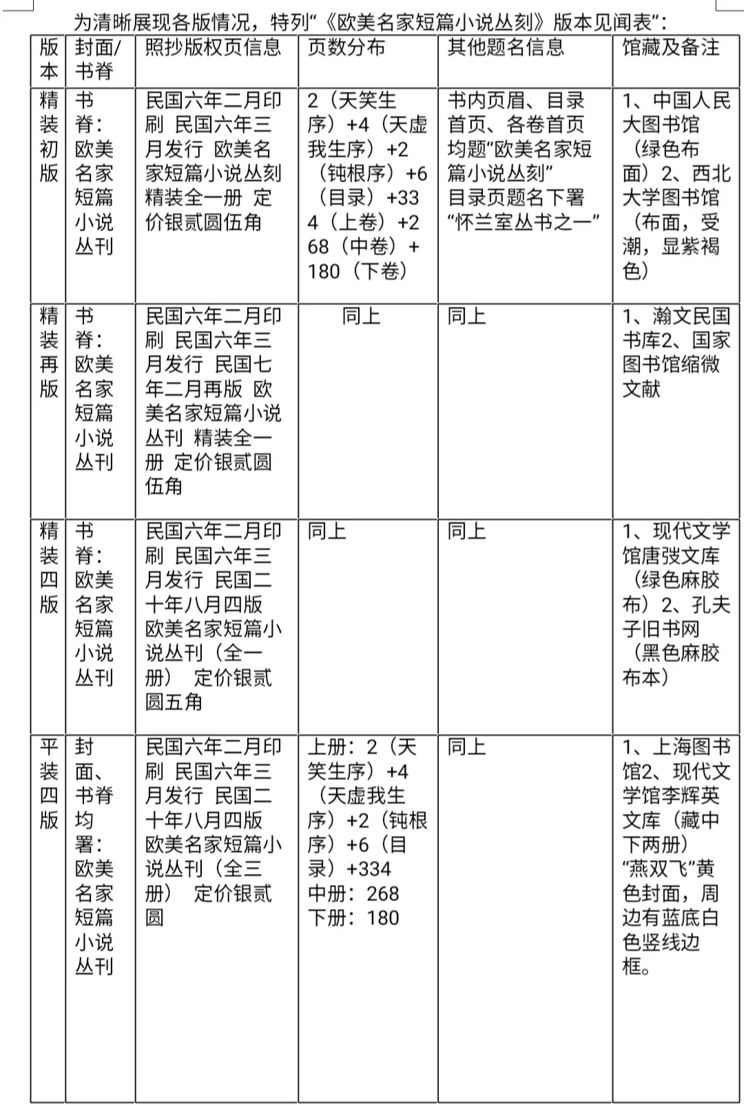 關鍵詞:《歐美名家短篇小說叢刻》初版書名 初版時間 著錄