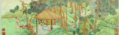 在文徵明的江南山水畫中,除了趣味風調的文雅,其新題材的攝入也頗有特色——這就是山水畫中雅集主題的表現。雅集題材的山水畫自古有之,如李公麟的《山莊圖》、趙佶的《文會圖》、馬遠的《西園雅集圖》等等。
