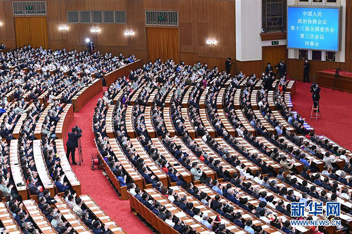 5月27日,中國人民政治協商會議第十三屆全國委員會第三次會議在北京人民大會堂舉行閉幕會。 新華社記者 龐興雷 攝
