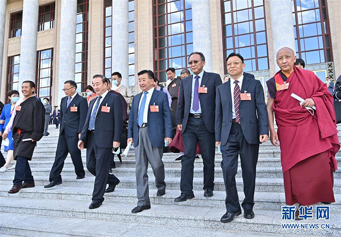 5月27日,中國人民政治協商會議第十三屆全國委員會第三次會議在北京人民大會堂舉行閉幕會。這是閉幕會后,委員們走出人民大會堂。 新華社記者 李鑫 攝
