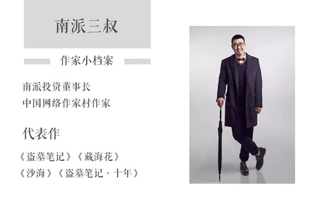 時至今日,原本兼職寫作的那位外貿公司小職員已經變成了集作家、編劇、監制和公司董事于一身的南派三叔,而《盜墓筆記》,也成了與他身份密不可分的的一個符號。