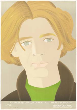 卡茨緊貼當下,置身此時此刻、即興式的藝術理念,與奧哈拉的詩學觀念如出一轍。奧哈拉在一篇闡釋個人詩歌風格的重要文章《人格主義:一份宣言》(Personism:a manifesto)中寫道:“沒有人必須體驗任何他們不需要的東西,如果他們不需要詩歌來凌辱他們。我也喜歡電影,話說回來,在所有的美國詩人中只有惠特曼、克萊恩和威廉斯好過電影。至于勘測和其他的技術性裝置,那些都是常識:假設你想去買一套足夠緊身的短褲以使每個人都想和你上床。這里沒有任何形而上學的東西。當然,除非你奉承你自己去認為你正在經驗的是‘令人神往的’?!?/p>