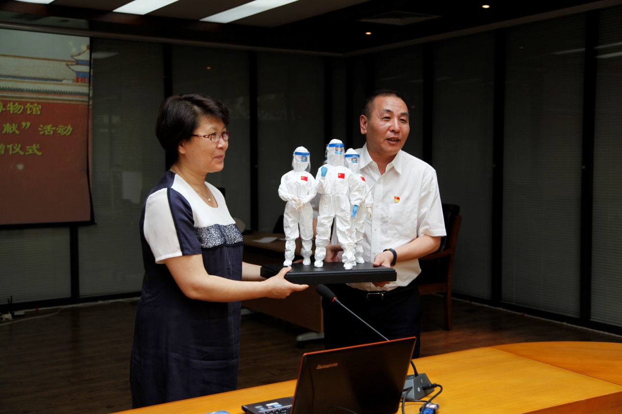 捐贈儀式上,肖維平介紹,“非凡抗疫,北京記憶”抗擊新冠肺炎文獻征集活動是首都圖書館為守護全民抗疫的時代記憶,做好特殊時期的記憶保存,傳遞抗疫正能量,充分履行圖書館“收集、整理和保存承載中華民族精神和時代記憶文獻資料”職責使命的重要舉措。自今年2月27日面向全市開展征集,已相繼收到熱心讀者捐贈的音視頻、圖片、文字、書畫作品等各類文獻700余件。北京工藝美術博物館此次向“非凡抗疫,北京記憶”抗擊新冠肺炎文獻征集活動捐贈的物品包括書畫作品、醫護人員形象絹人(石榮祿《祈福武漢 天佑中華》書法作品與馬燕平《最美逆行者》絹人擺件)、工藝美術相關視頻98段、活動倡議書等,均來自“遙祝武漢 匠心奉獻”公益活動。