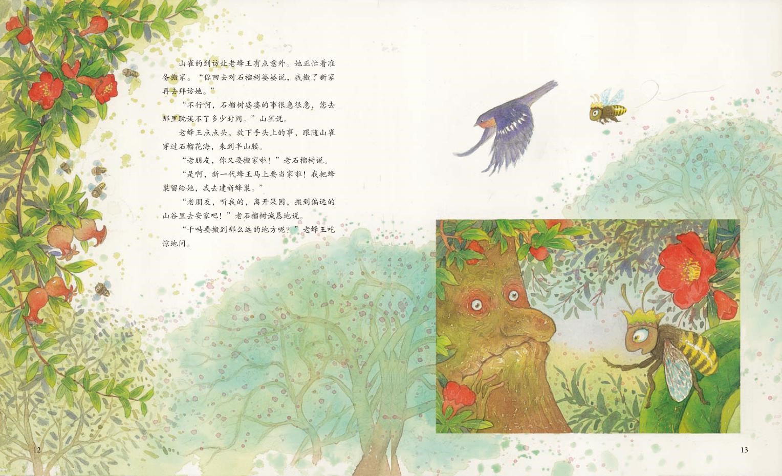 果園里的老石榴樹特別希望野蜜蜂家族能搬遷到遠方的山谷去安家,繁衍后代。因為她很清楚,野蜜蜂家族變成弱群的原因。老蜂王沒有答應,她可不能在石榴樹開花最需要授粉的時候離開果園。當年輕的蜂王誕生時,野蜜蜂家族遭遇了外敵大黃蜂的襲擊。危難時刻,年輕有為的蜂王帶領蜂群加緊訓練后與大黃蜂斗智斗勇,最終打敗敵人。在老蜂王的囑托下,年輕蜂王帶領新的蜂群飛向山谷……