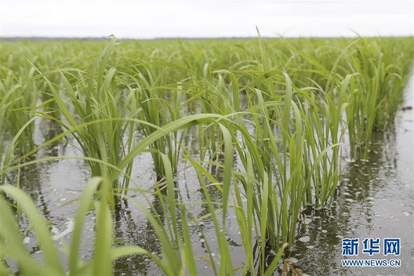 北大荒農墾集團有限公司建三江分公司(管理局)七星農場長勢良好的稻田(6月15日攝)。新華社發(張濤 攝)