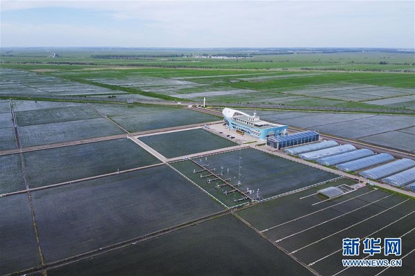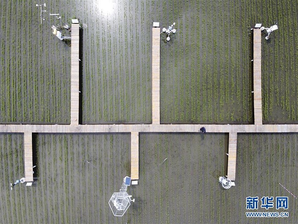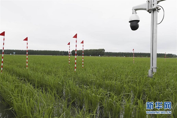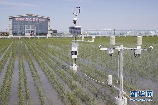 北大荒建三江國家農業科技園區里的監測設備(6月15日攝)。新華社發(張濤 攝)