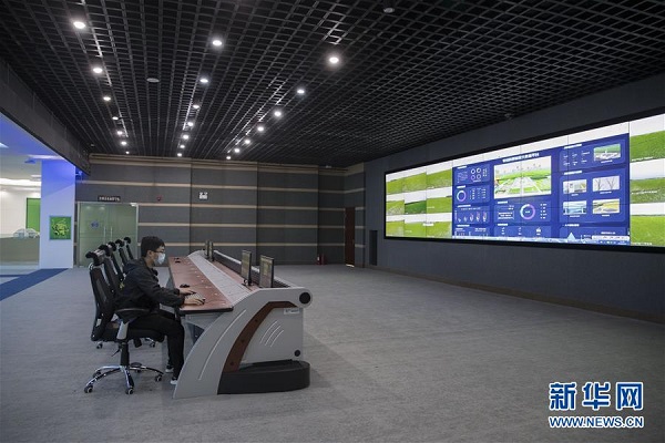 工作人員在北大荒精準農業農機中心的農業物聯網綜合服務信息化平臺上進行操作(6月15日攝)。新華社發(張濤 攝)