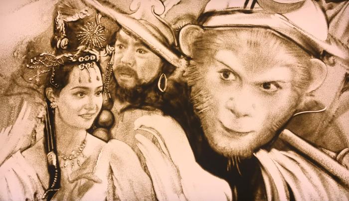 沙畫再現老版《西游記》中的人物。受訪者供圖