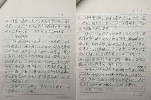 美食為兩人同好,談起美食,暢安老是謙遜而自信的,信中言道:“前兩期《中國烹飪》汪曾祺先生撰文點了襄的名,中有不甚確實之處,故不得不作一答復,茲連同尚未刊出拙作復印一并寄奉,聊博一粲?!?/p>