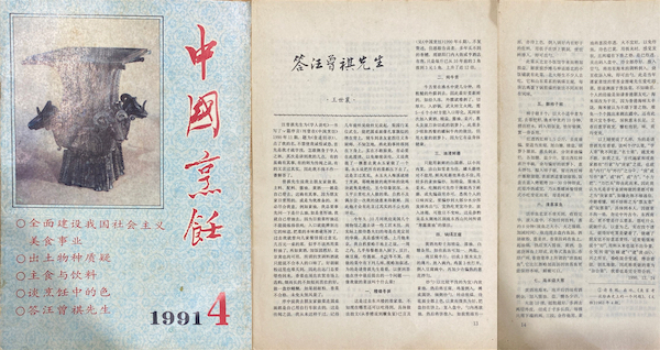 《中國烹飪》創刊于1980年,暢安老與于光遠、王利器、許姬傳等七人為顧問,汪曾祺先生也偶做文章,1990年汪先生為《學人談吃》寫了一篇序言,發表在《中國烹飪》1990年第十一期,題目為《食道舊尋》,文中點了暢安老的名拋磚引玉,提及暢安老精于烹飪,曾有一道燜蔥技驚四座。
