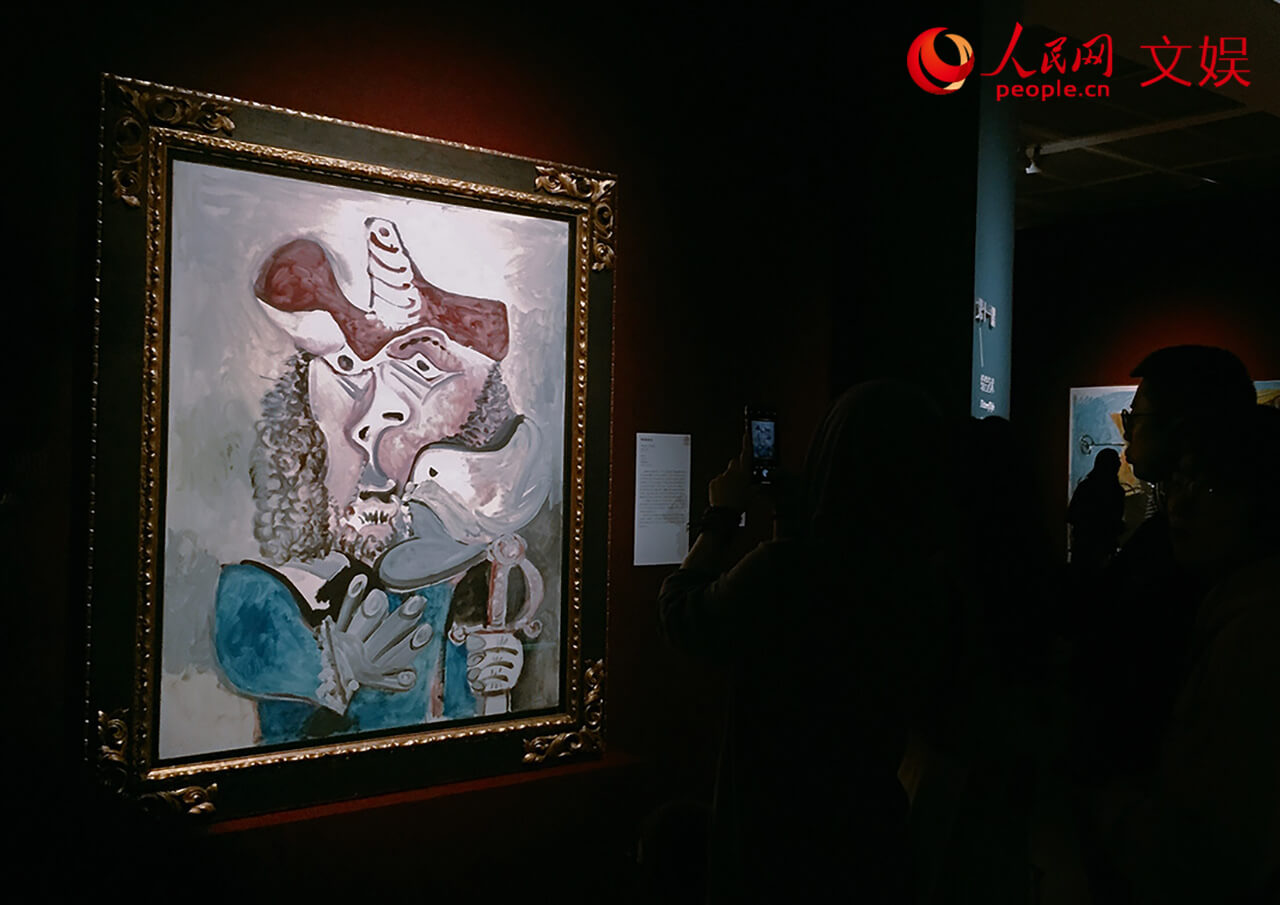 觀眾在畢加索《帶鳥的步兵》前駐足觀看。人民網 孟麗媛攝