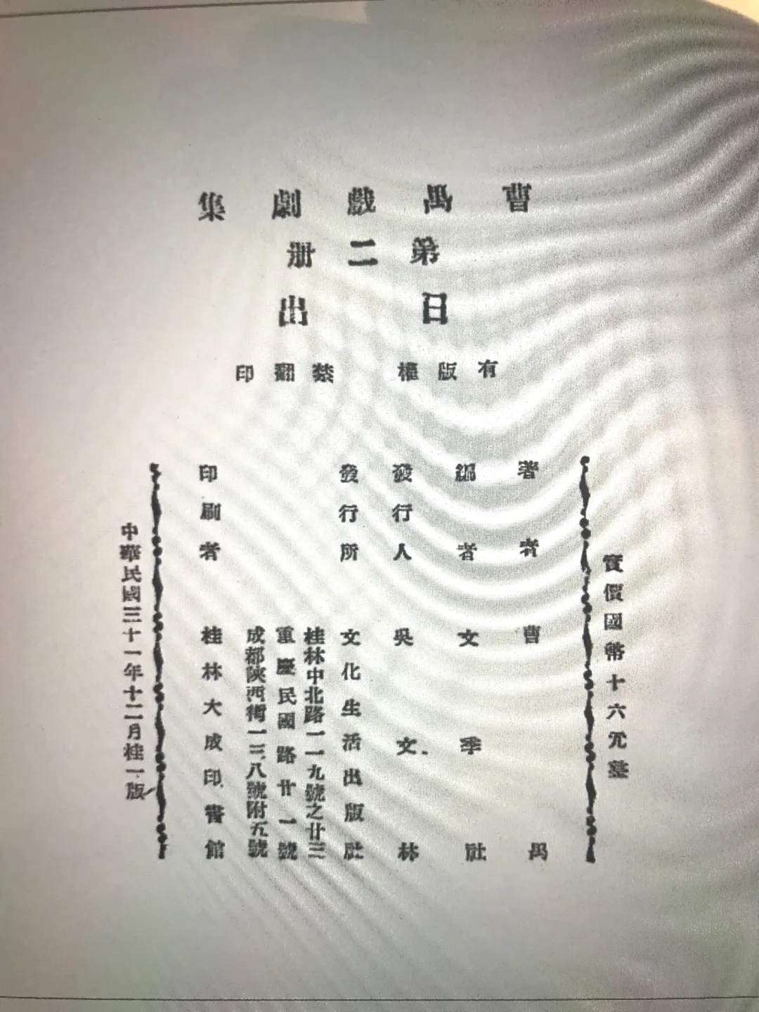1942年12月出版曹禺戲劇集“桂一版”