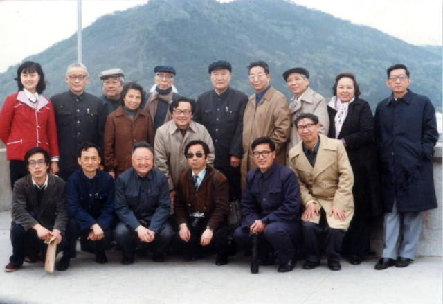 后排左起2周玨良,3畢朔望,4楊豈深,5吳富恒,6戈寶權,7湯永寬,8 屠珍,9梅紹武; 中排左1吳富恒夫人,2董樂山;前排右1施咸榮,2郭繼德,3楊武能,4陳冠商;余為座談會東道主。