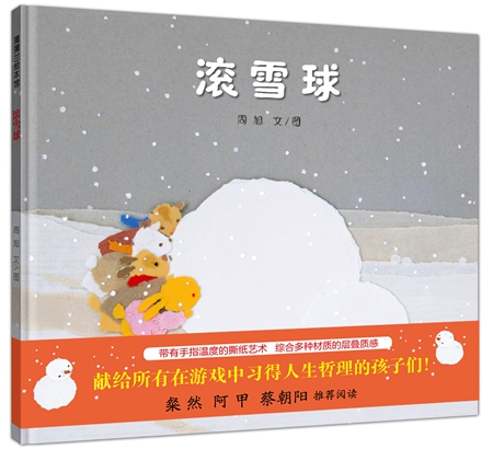 《滾雪球》《大雪蓋不住回家的路》《躺在草地上看云朵》這一系列的畫面處理上,我放棄了傳統的繪畫手法,首次嘗試用撕紙粘貼的形式。手工紙和手工宣紙的薄厚,粗糙的紋理,層層疊加后所產生的深淺變化,使畫面的色彩和層次變得更加微妙,更加豐富也更加韻味獨特了。我想一本繪本應該像人一樣有自己的氣質和性格,我想把這個系列做成比較文靜的圖畫書,這種嘗試也是想讓這幾本書的氣質和性格和別的繪本能夠有所不同。