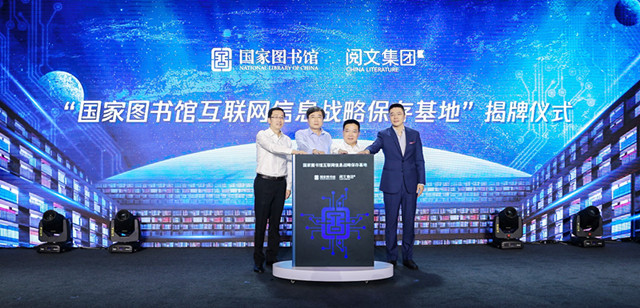 會上,閱文集團掛牌成為國家圖書館第二家互聯網信息戰略保存基地,同時,來自閱文平臺的百部網文佳作被典藏入館。