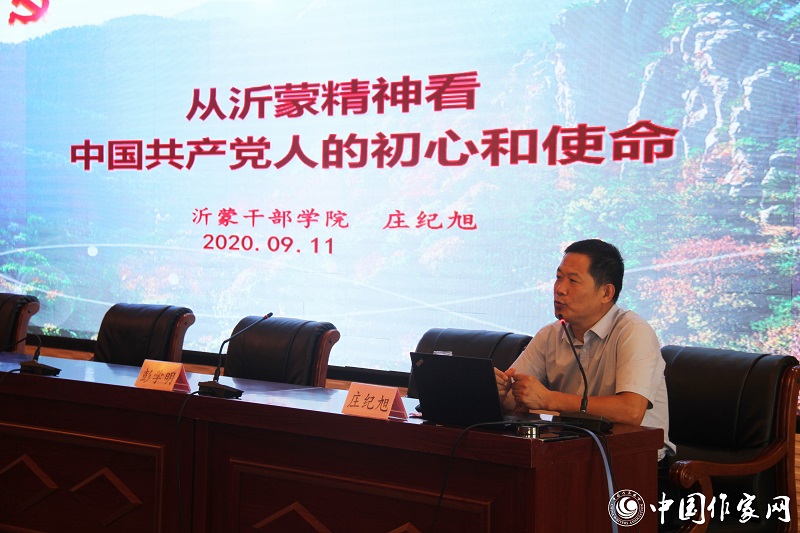 啟動儀式后,沂蒙干部學院教授莊紀旭從沂蒙精神的內涵和形成過程以及如何弘揚沂蒙精神三個方面為大家作了題為“從沂蒙精神看中國共產黨人的初心和使命”的主題講座。