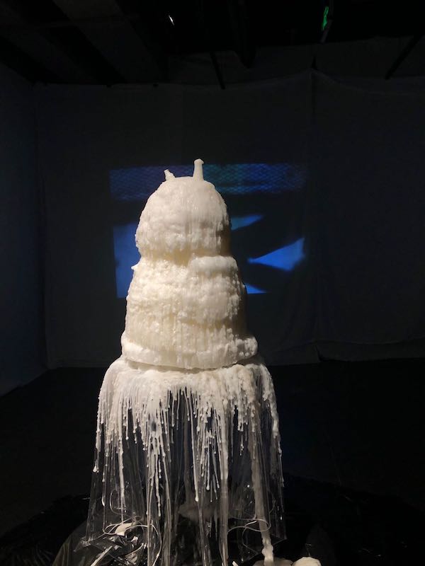 當外界的產物無法真正療愈內心的時候,沉浸下來審視真正的自我變成了人生中重要的課題。此次“孤獨療愈室”展區用絲綢布簾分割開,營造出昏暗的環境讓觀展者沉浸自我,思考探索本我的存在。謝釵和Vasin這兩位藝術家都運用了多媒體作為表達媒介。他們的作品都主動包容了觀眾的主觀意識,加深了觀者精神和空間上的體驗。聽覺、視覺和觸覺均得到滿足。同時他們的作品中也包含了中國傳統思想的影響,體現出了作品極大的包容性,消融了過去與現在的界限。