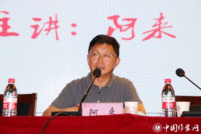 由中國作協文學工作者職業道德教育委員會副主任、作家阿來帶領的第一小分隊走進臨沂大學,中國作協文學工作者職業道德委員會委員、作家賀紹俊、劉華,臨沂市作協主席高振,臨沂大學副校長池福安,以及10余位作家代表與臨沂大學百余名師生參加活動。本次講座由阿來主講,賀紹俊點評。