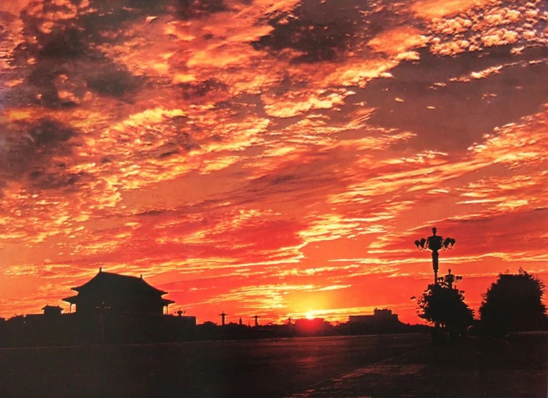 創作于1961年的攝影作品《東方紅》,是袁毅平最廣為人知的作品。一天清晨,中央人民廣播電臺播放開始曲之前,反復響起了《東方紅》的樂曲聲,給袁毅平帶來了靈感。為了創作這幅作品,他用了兩年多的時間等候時機,終于拍攝到天安門廣場上,初升的太陽在東方地平線上呼之欲出,漫天紅色霞光的瑰麗風采。