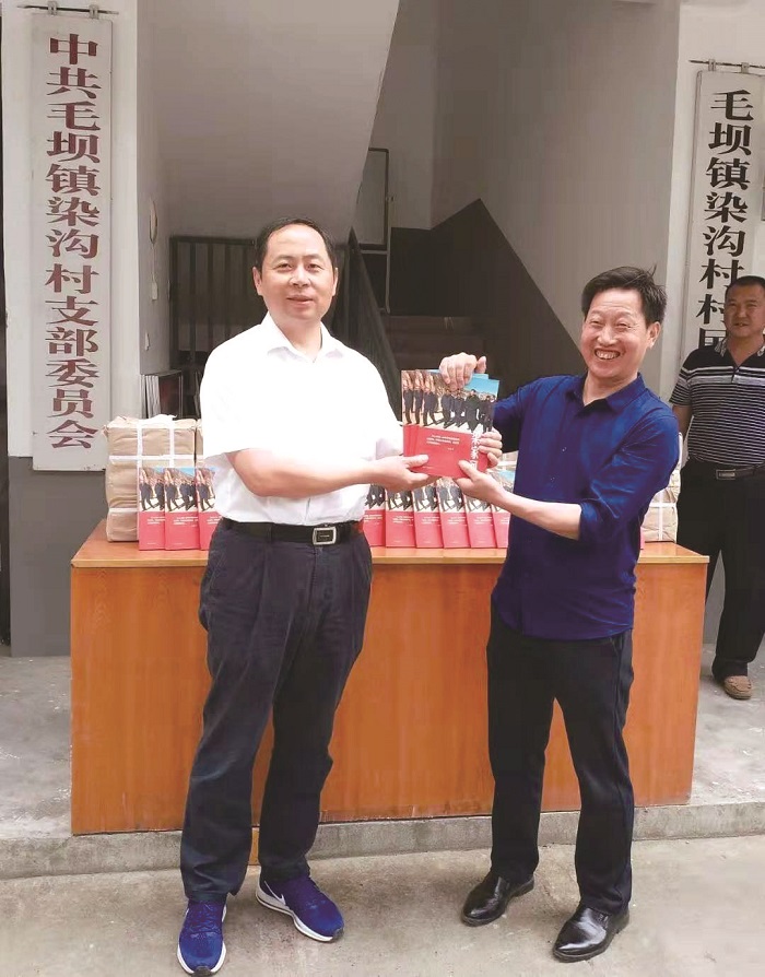 2018年10月17日,是全國第五個“扶貧日”。省作協機關干部一行十余人赴染溝村開展“扶貧潤心,你我同行”聯戶扶貧工作,走村入戶,與村民交談,發揮扶智扶志的獨特作用,引導廣大貧困群眾自強自立,戰勝困難。他們還為毛壩鎮、染溝村捐贈紀實文學《梁家河》及辦公電腦等,向毛壩中學贈送圖書300余冊,舉行小小作家班開班儀式,鼓勵少年兒童熱愛文學、立志成才。