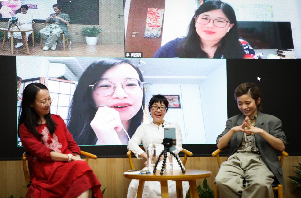 龐穎選讀了《我還是想》。她談到,“余老師那種非常直接的表達,不管是在詩里還是詩外,都是非常難得的。她的詩讓我看到了以前沒有看到的世界?!泵摽谛阊輪T池子也參與了現場連線,和余秀華互動,開啟一場歡樂秀。