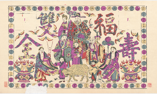 《福壽雙全》 清代版,套印年代:五十年代,桃花塢,縱30厘米,橫50厘米