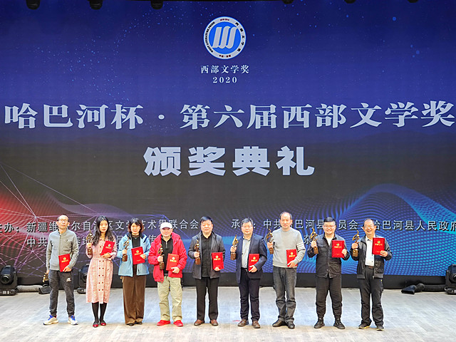9月26日,由新疆文聯、阿勒泰地委宣傳部主辦,哈巴河縣委、縣人民政府、《西部》雜志社承辦的“哈巴河杯?第六屆西部文學獎”頒獎儀式在景色怡人的新疆哈巴河縣舉行,共有9位小說家、詩人、散文家、批評家和翻譯家摘得桂冠。