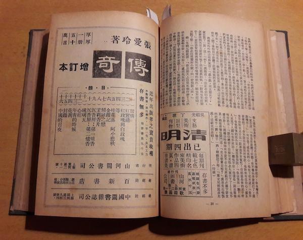 一九四五年八月之后,上海的文化期刊有過幾個月的間歇,又繁榮起來。我的收集興趣雖然不如八月之前那般熱烈,但是見到中意的幾乎全買到手了,如《文藝復興》,《人世間》,《文章》,《周報》,《大家》,《文萃》等等,這么說吧,該有的全有了,這些品種均可視為雜志中的上駟?!洞蠹摇返牡檬稚郧?,一開始我搜集張愛玲的初發刊只限于一九四五年八月之前的,沒有通盤考量,等到醒悟過來正確的作法時,張愛玲已經是熱門的標志,不好找而且價錢貴。我的書友趙國忠某個周末早晨在潘家園書攤碰到一個書販賣一堆舊期刊,他錢不夠,趕到門口等我來,再去找那個書販,東西已經易手。趙兄無大所謂,舊期刊不是他的主項,我卻懊喪不已,問他那堆雜志里都有什么,稱有《文飯小品》,《大家》,《人間世》等十幾種,我更是懊惱。