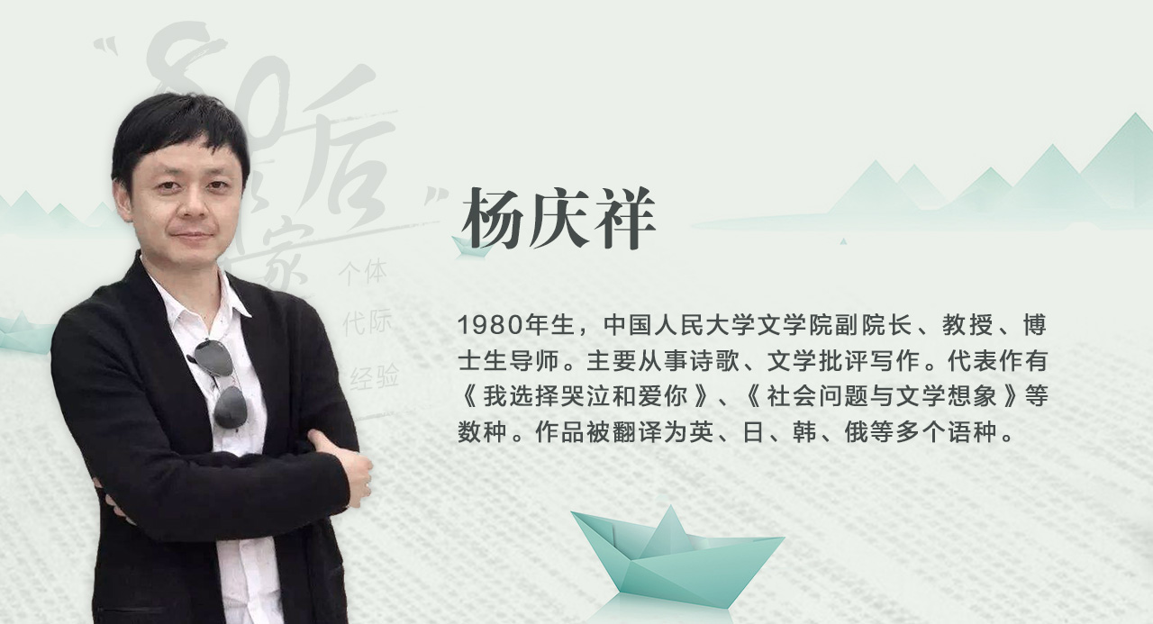 楊慶祥:我是在博士階段對自己作為代際的一份子有了比較強烈的自覺,就是說有了“我作為一個出生在1980年代的生命個體和歷史存在”的清醒意識。個人與歷史和社會之間到底構成什么樣的關系,亦或個體和集團、個人和歷史、個人和社會之間到底構成一種什么樣的關系,是我一直以來所有思考、寫作和研究的一個基本出發點。