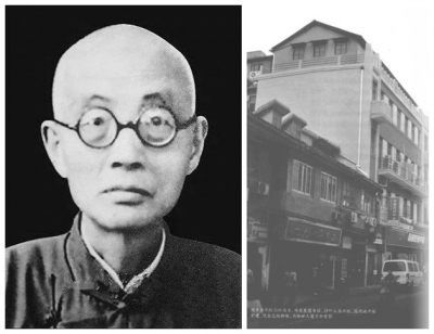 左:汪孟鄒,右:右側較高的樓房為亞東圖書館舊址
