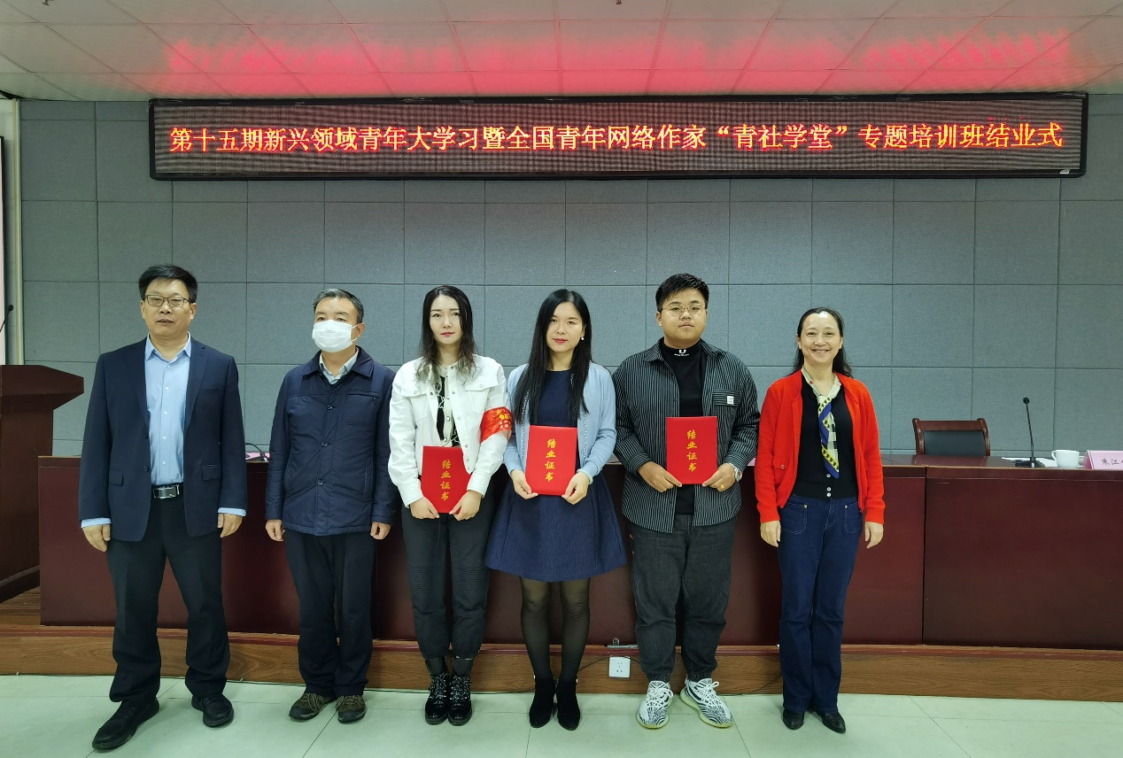 10月13日-19日,由團中央社會聯絡部、中國作協網絡文學中心與中央網信辦網絡社會工作局共同主辦的第十五期新興領域青年大學習暨全國青年網絡作家“青社學堂”專題培訓班在江西省井岡山市舉行。來自全國各地的青年網絡作家與重點文學網站從業者共計100人參加培訓。中國作協網絡文學中心副主任朱鋼、團中央社會聯絡部副部長呂偉、全國青少年井岡山革命傳統教育基地管理中心黨委副書記劉文蘭出席結業式。