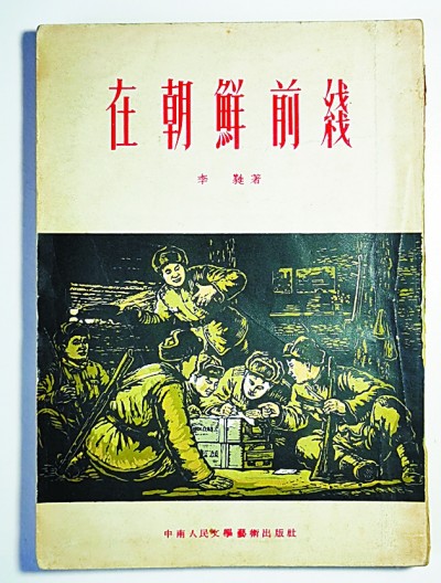 李蕤的通訊報告集《在朝鮮前線》,中南人民文學藝術出版社,1953年版,封面系古元木刻。