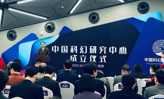 10月31日,中國科普研究所中國科幻研究中心在北京市石景山首鋼園區舉行成立儀式,來自科幻界、文學界、藝術界、教育界、產業界的60余名作家、學者、藝術家、教育家、企業家參加了成立儀式。