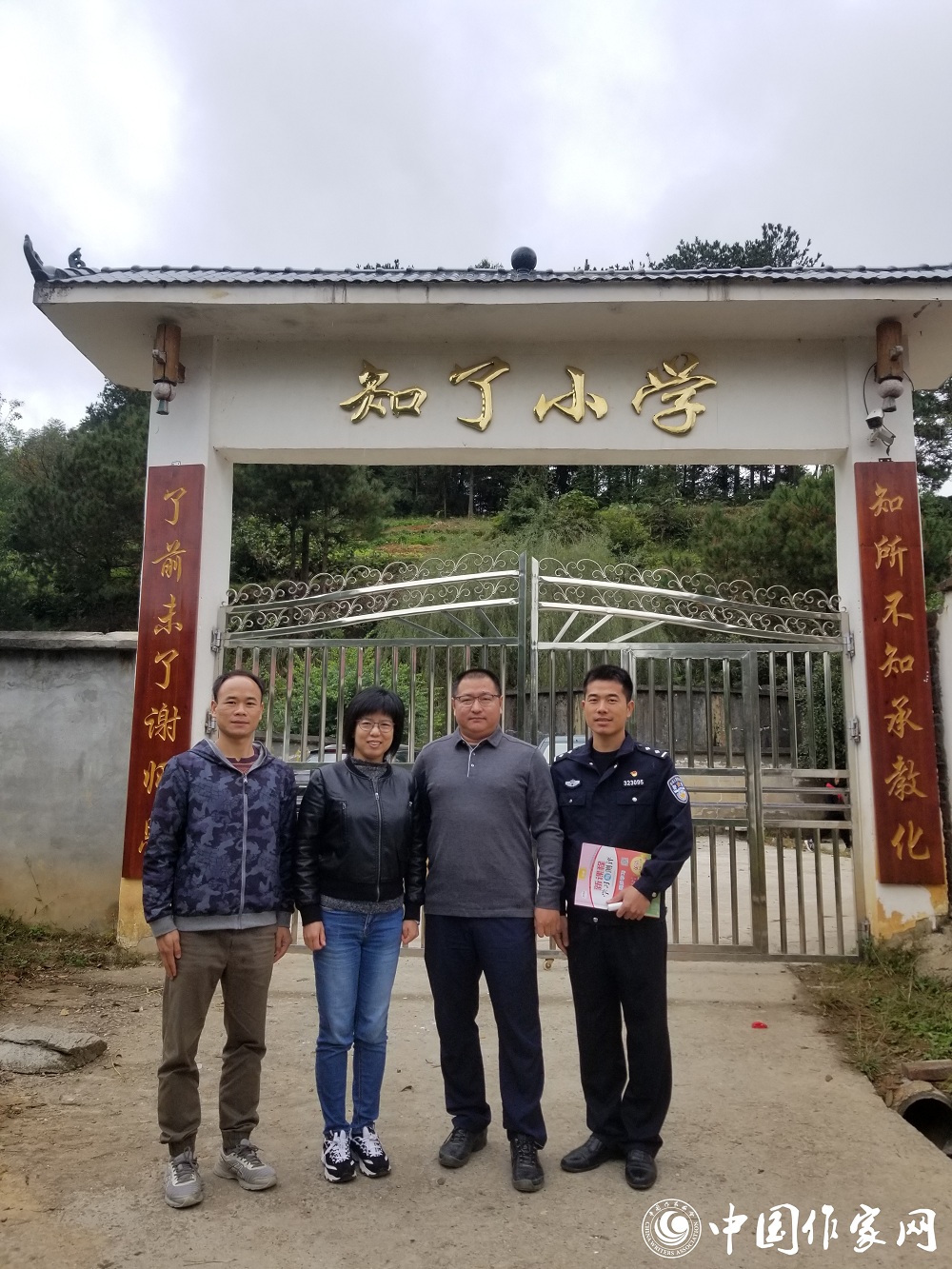 公安作家謝沁立在廣西三江縣知了小學采訪