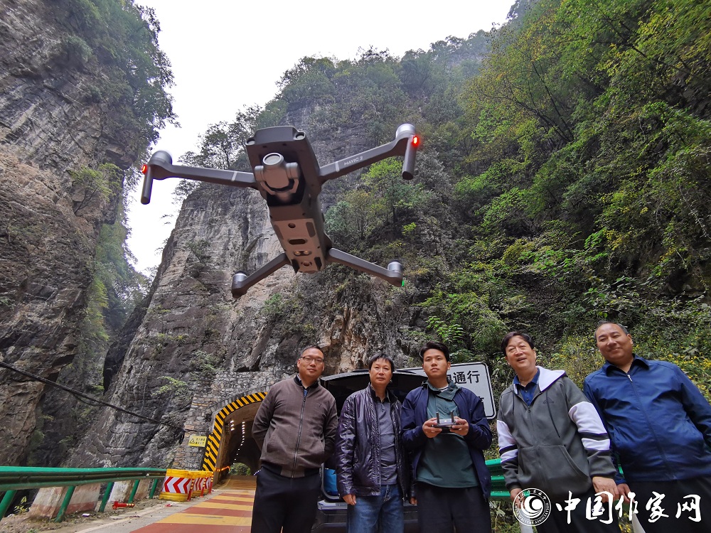 鐵路作家趙克紅在河南欒川縣西南鐵路小鎮采訪交通扶貧歷程,圖為無人機拍攝山里人出行道路改善情況