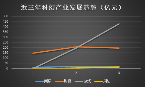 2019年中國科幻產業總值658.71億元,比2018年的456.35億元有所增長??苹瞄喿x除了傳統紙媒圖書之外,數字閱讀和有聲讀物也在穩步增長??苹弥苓叜a品逐漸產生,產值接近科幻圖書??苹糜耙曤m然在國產科幻片《流浪地球》單部異軍突起有驚人增長的狀況下,整體還是比前一年有所下降??苹秒娮佑螒蚶^續高速發展,引人注目。上述變化的原因,除了受到消費群體的增長和愛好者增加的影響,還跟國家的管控和創作過程的特點有著密切關系。