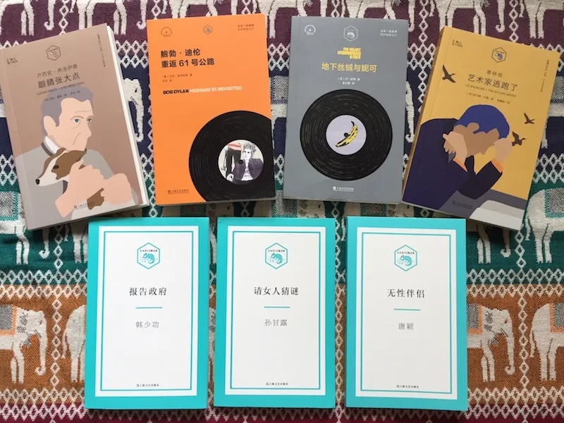 近十年前,在小精裝甚囂塵上的時期,曾以一套十種“新文藝現代藝術大家隨筆”的軟精系列,刷新了時人的袖珍本美學觀的上海文藝社,近來又推出了“小文藝·口袋文庫”,按內容分為“知物”“知人”“小說”和“33?”等子系列,涵蓋隨筆、傳記和純文學等題材。給人的感覺應該是一個開放性文庫,以后應會納入更多的內容。作為無勒口普通平裝本,這套小書把Logo、顏色區分、書脊的功能設計等文庫要素做到了極致,近乎尤物級,無言地詮釋著出版方所謂“小而簡就是美”的主張,令人愛不忍釋。我純憑興趣,暫入了八種,分別為西方流行文化系(“33?”)的《地下絲絨與妮可》([美]喬·哈佛著,姜亦朋譯,2019年1月版),《鮑勃·迪倫:重返61號公路》([意]馬克·波利佐提著,洪兵譯,2020年6月版);“知人”兩種:美國小說家塞林格的傳記《藝術家逃跑了》([美]托馬斯·貝勒著,楊赫怡譯,2020年2月版),英國藝術家盧西安·弗洛伊德傳記《眼睛張大點》([美]菲比·霍班著,羅米譯,2020年2月版);還有三種新銳小說:《請女人猜謎》(孫甘露著,2017年6月版),《報告政府》(韓少功著,2017年4月版)和《無性伴侶》(唐穎著,2017年4月版)。