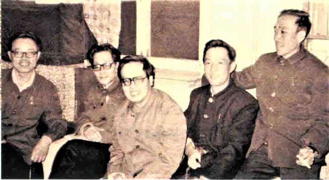 1983年香山會議后,眾科幻作家聚于鄭文光家中,左起為葉永烈、肖建亨、鄭文光、王曉達、徐唯果。彼時中國科幻正處飄搖之際