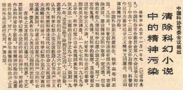 1983年11月2日,《人民日報》刊文《清除科幻小說中的精神污染》