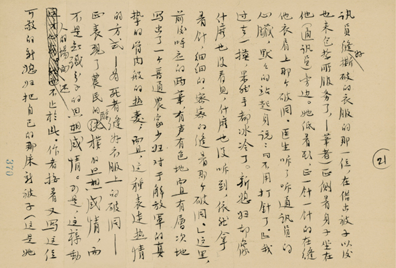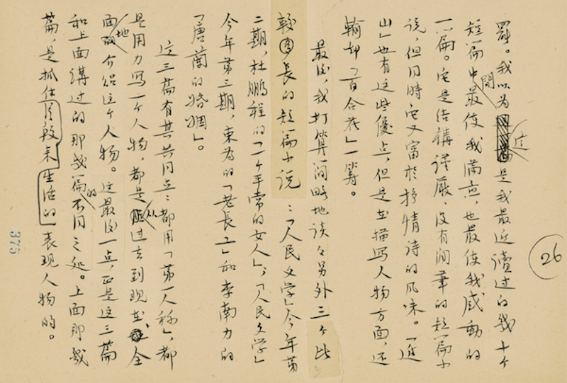 這一手稿是1958年寫的,我是搞畫史的,對文學史不是太了解,但里面有一個共通的現象,就是文藝為大眾服務越來越走向高潮,從這一手稿里面可以看出來。實際上當時有一個大背景,提倡寫短篇小說,別人容易看得明白,當時出了一批新作者,主要的目的是貼近生活。實際上從繪畫史的話,這些要求在畫史里面也存在的,這是可以相互參看的。